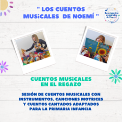 Sesión de cuentos musicales con instrumentos, canciones motrices y cuentos cantados adaptados para la primera infancia.